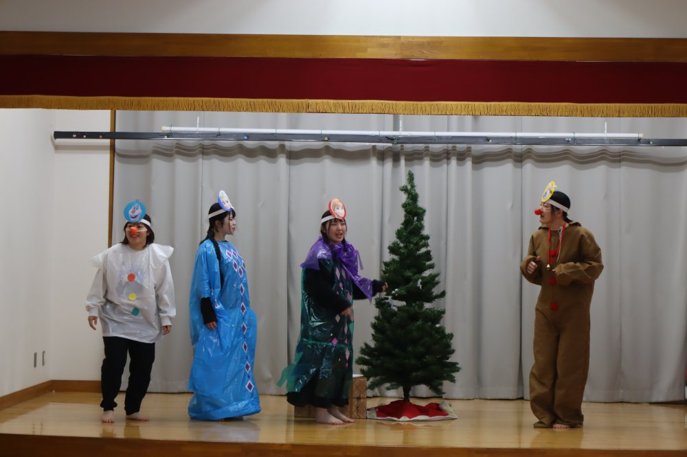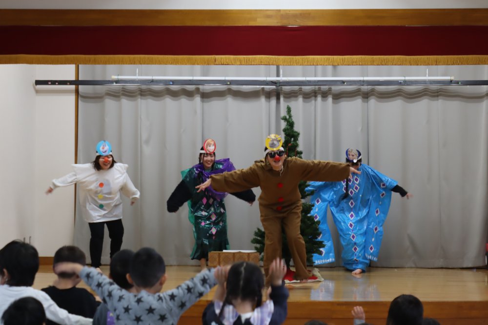 クリスマス会では先生たちの楽しい劇からスタートしました。